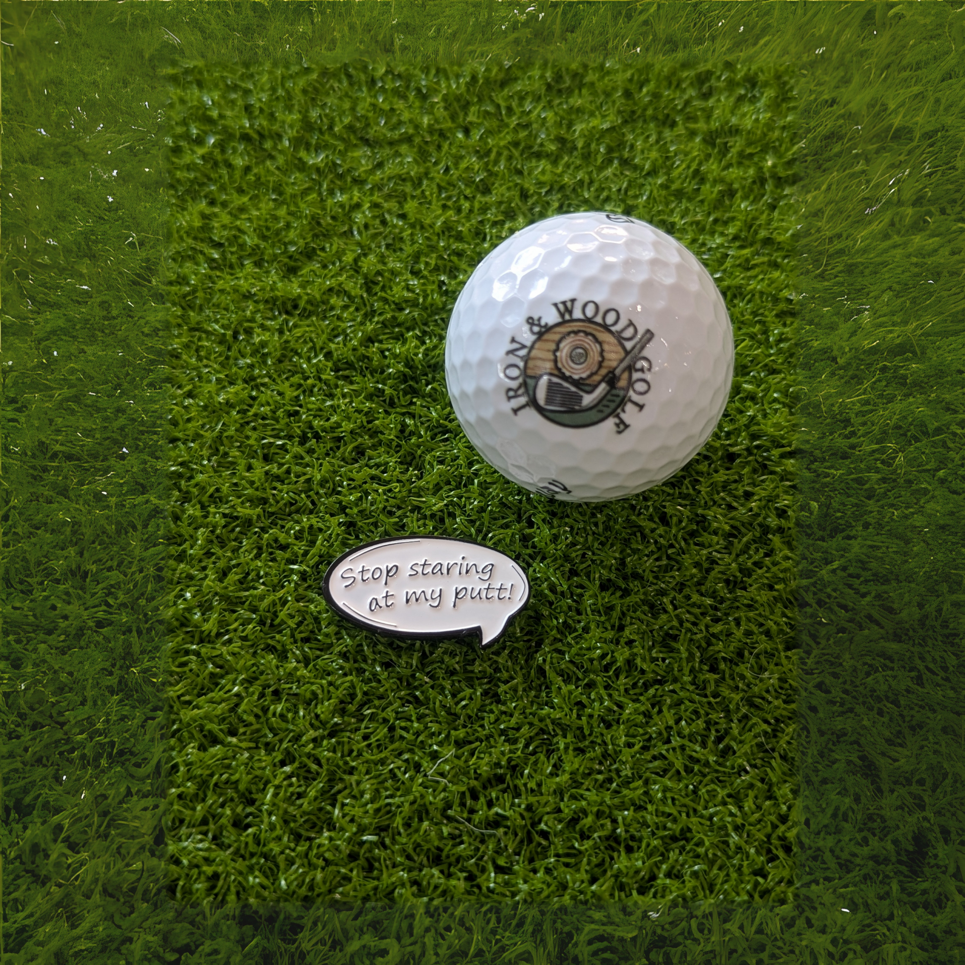 Introducing the "Stop Staring at My Putt" Ball Marker – because nothing says "I’m here to play" quite like calling out your group for lingering too long at the business end of your game. This isn’t just any ball marker; it’s a bold statement in the form of a witty word bubble that lets everyone know you’re focused and, honestly, they should be too.